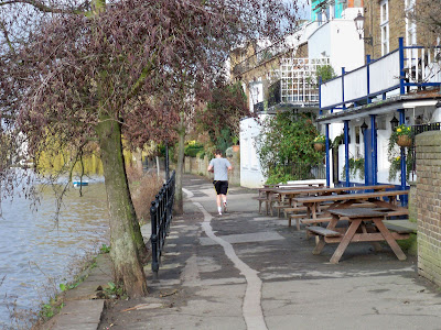 We ran from Chiswick, down to and over Kew Bridge and back up the other side of the river. I gave Jack the choice of carrying on to Hammersmith Bridge and going over our 9 mile target, or cutting back across Barnes Bridge and having to make up the miles back in Chiswick. He was beginning to flag as we had been running for well over an hour, and decided that he was not running any more than 9 miles today!